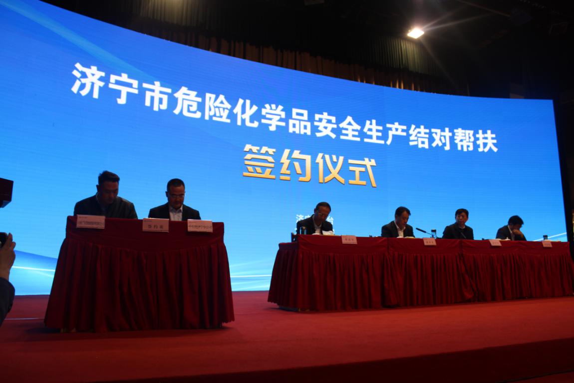 会前,与会人员实地观摩了鲁泰化学的PVC智能仓储、全自动包装、液碱全自动智能化充装,并参观了鲁泰化学生产现场的安全管理现状。会上,与会人员观看了鲁泰化学“三化”改造视频,鲁泰化学相关负责人介绍了“三化”改造工作及安全管理经验做法,鱼台县、金乡县、汶上县等县市区,国际焦化、中银电化、奔腾漆业等企业代表进行了表态发言。会议还启动了全市危化品安全生产结对帮扶活动,荣信集团、世纪阳光、中石化济宁公司、兰星能源4家企业代表就结对帮扶进行了签约。