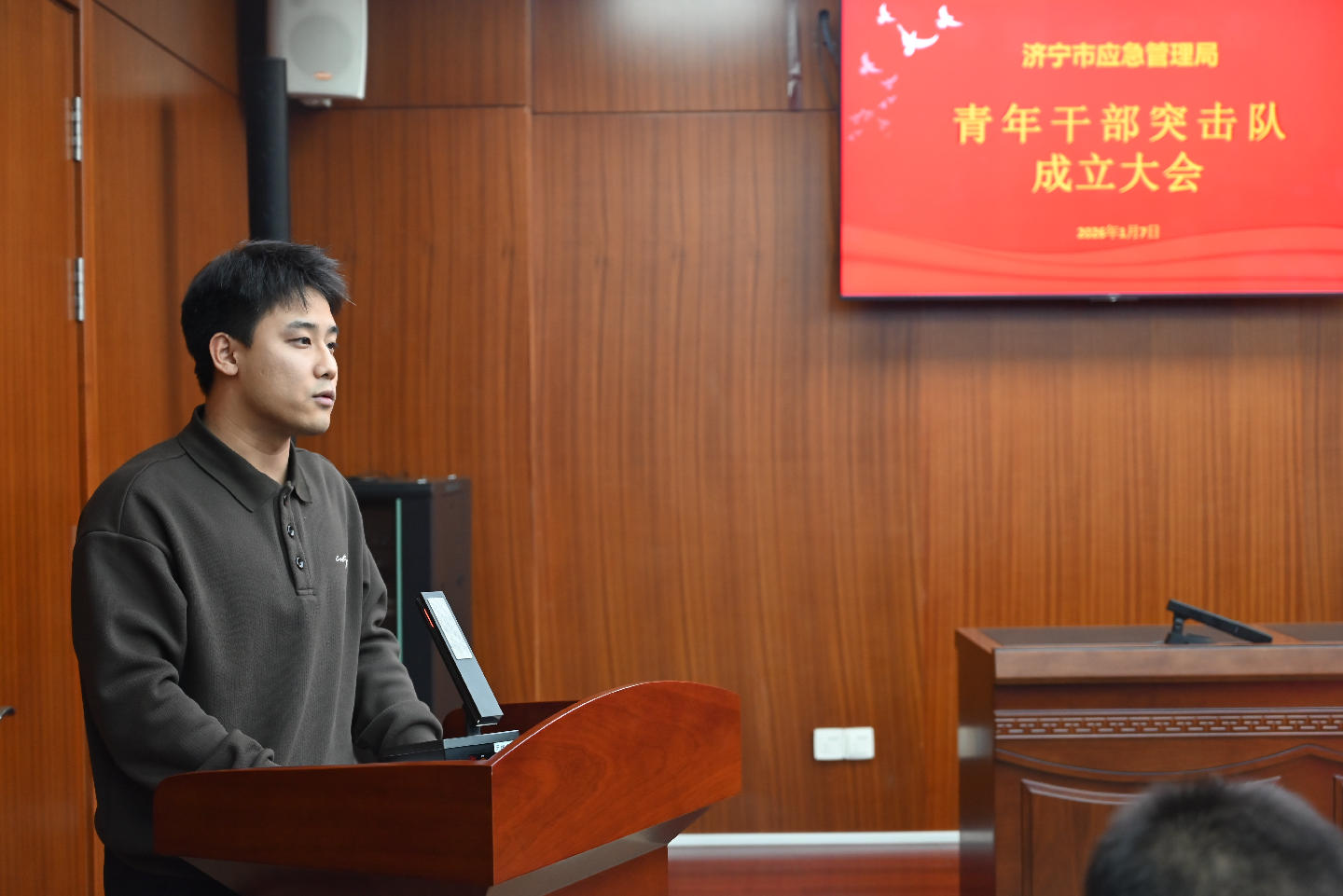 1月7日,济宁市应急管理局青年干部突击队成立大会召开,市应急局党委书记、局长、一级调研员张华山出席会议并讲话,市应急局党委委员、副局长张爱萍主持。